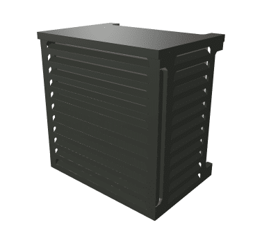 La pente de 2° sur le dessus du cache, qui permet le bon écoulement de l'eau, implique une hauteur différente entre avant et arrière. La hauteur à l'avant résulte de la hauteur à l'arrière.